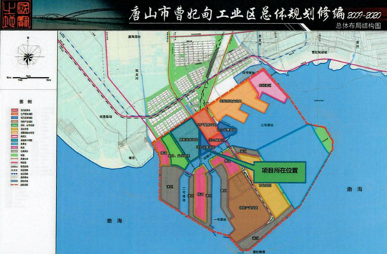 (上圖為曹妃甸工業區總體規劃及本項目所在位置)