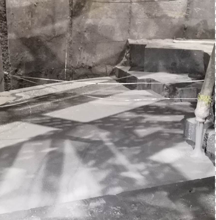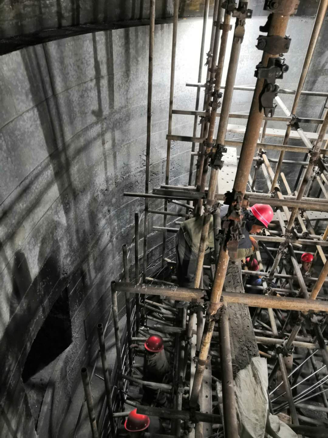 (上圖為1#高爐爐底塑性相碳磚材料澆注施工)
