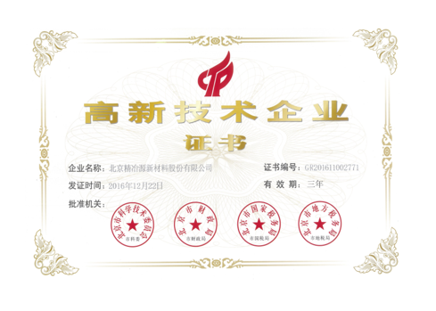2019年12月下旬,北京精冶源新材料股份有限公司(簡稱:精冶源;股票代碼:831091)歷經嚴格而規范的書面審查、專家評審、公示等多項程序,被北京市知識產權局認定為2019年度北京市知識產權試點單位。